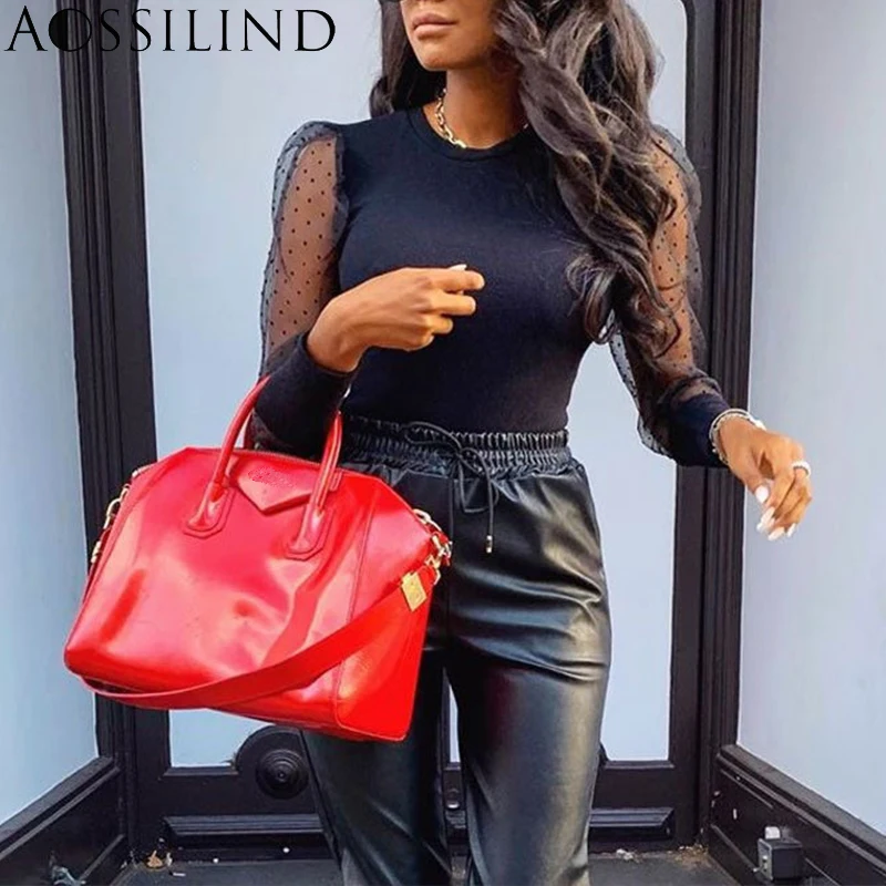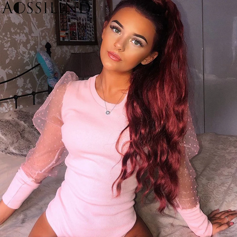 AOSSILIND Transparent Mesh Patchwork Bodysuit Autumn Women Long Sleeve Skinny Sexy Rompers Ladies Slim Body suits look the best product that related to