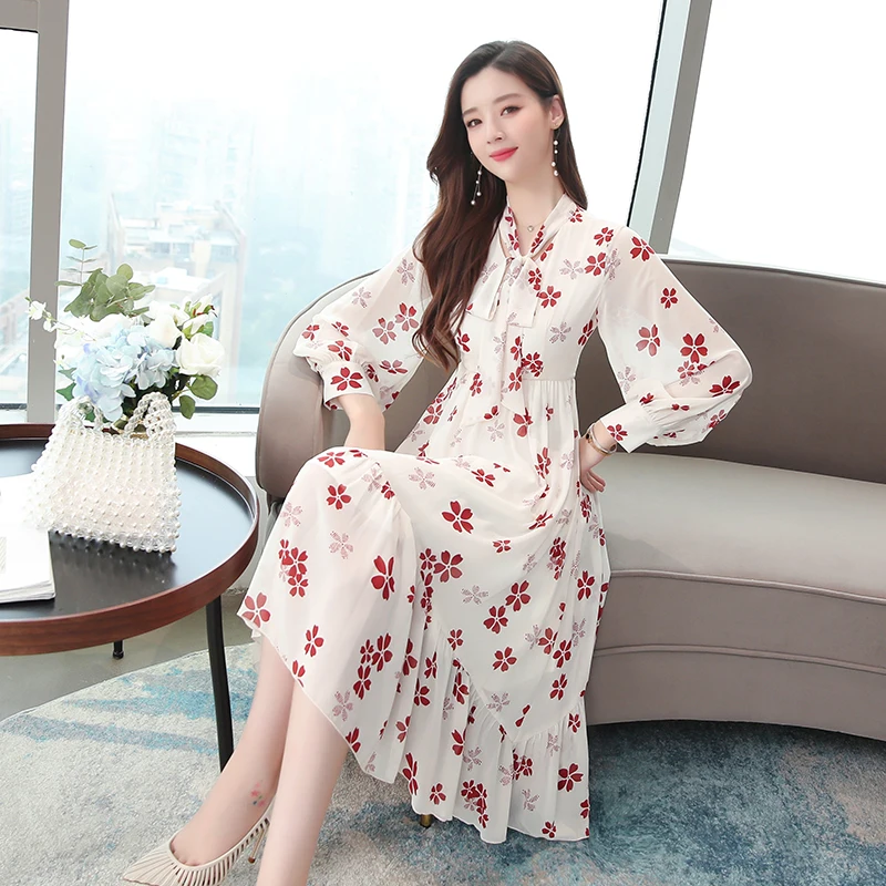 Autumn Spring Floral Print Beige Long Fairy Dress Female Boho Elegant Vacation Dress Vintage Long Sleeve Korean Runway Vestidos look the best product that related to