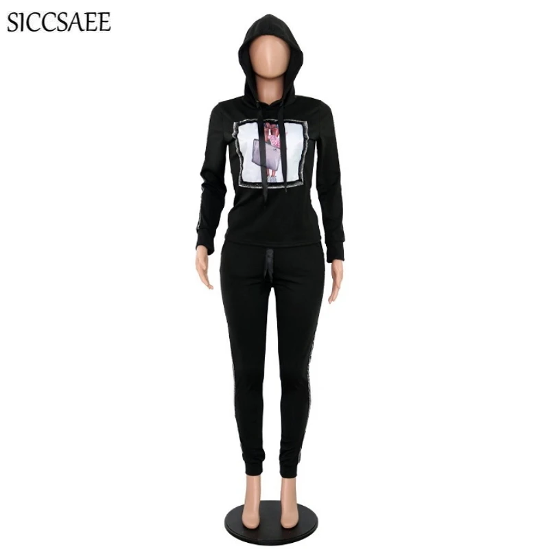 Cartoon Printed Two Piece Set Loose Tracksuit For Women Moleton Feminino Sexy Casual Outfits Activewear Hoodies Sweat Suit 2020 look the best product that related to