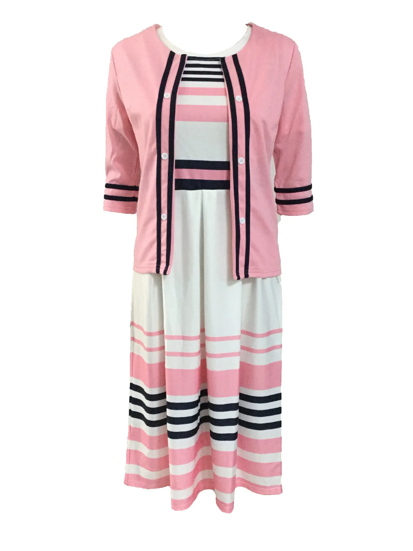 Women Plus Size XL-5XL Two Piece Set Female Spring Summer Short Sleeve Dress and Half Sleeve Tops Elegant 2piece Set Outfits 200003494