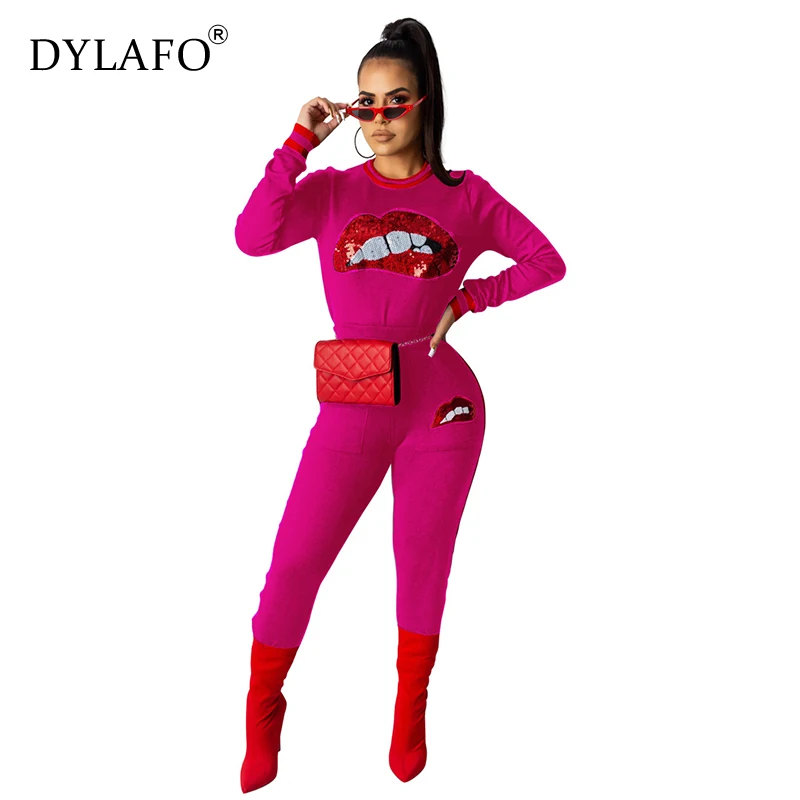 Sequins Big Lips Print Casual 2 Piece Suits Long Sleeve O Neck Top+Leggings Pants Autumn Sets Women Clothes Plus Size Tracksuits look the best product that related to
