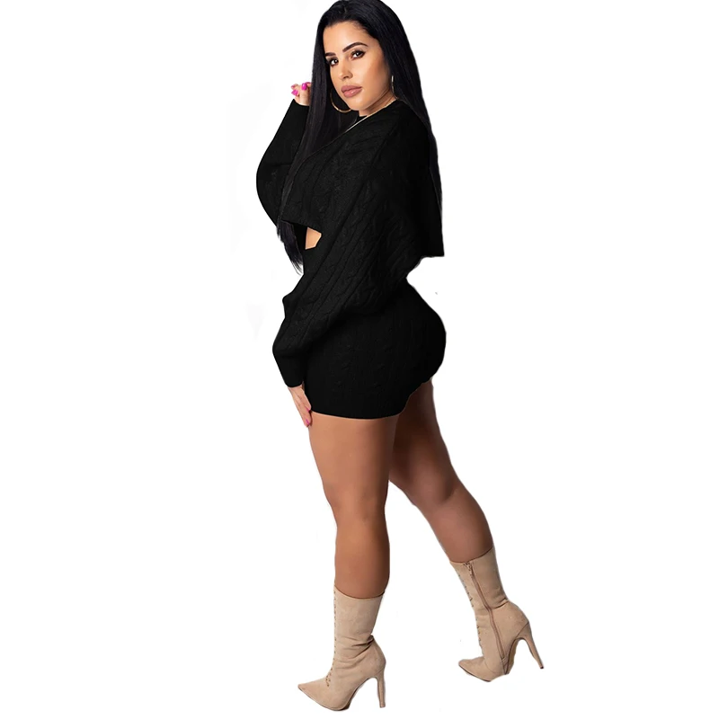 Two Piece Set Rompers Womens Jumpsuit Knitted Solid Crop Top Elastic Waist Bottom Autumn Romper Sexy Shorts Overalls Playsuit 200003494