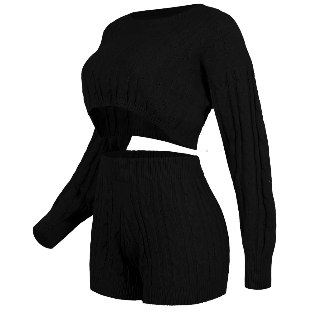 Two Piece Set Rompers Womens Jumpsuit Knitted Solid Crop Top Elastic Waist Bottom Autumn Romper Sexy Shorts Overalls Playsuit look the best product that related to